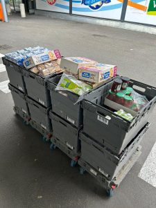 Nos colis alimentaires contiennent des produits secs (pâtes, riz, semoule, lentilles, conserves, biscuits, sauces, huile), et des produits d’hygiène (savon, shampoing, dentifrice).